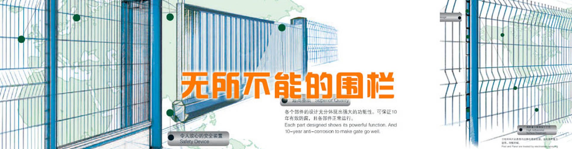 河北思固爾圍欄設(shè)施有限公司致力于專(zhuān)業(yè)的場(chǎng)地防護(hù)產(chǎn)品的研發(fā)與生產(chǎn),為全球客戶提供優(yōu)質(zhì)先進(jìn)的金屬?lài)鷻凇⑷摻Y(jié)構(gòu)大門(mén)和其他防護(hù)產(chǎn)品及服務(wù)。思固爾圍欄以一種目前市場(chǎng)上成熟的設(shè)計(jì)理念將立柱與焊網(wǎng)結(jié)合在一起,可以應(yīng)廣大客戶的要求提供理想的解決方案。公司于2002年通過(guò)ISO9001質(zhì)量管理體系認(rèn)證;2004年被評(píng)為項(xiàng)目建設(shè)先進(jìn)單位,信用優(yōu)良企業(yè),科技進(jìn)步先進(jìn)單位;2006年底公司取得了自營(yíng)出口權(quán);2006年5月10日思固爾圍欄獲得中華人民共和國(guó)國(guó)家知識(shí)產(chǎn)權(quán)局頒發(fā)的實(shí)用新型專(zhuān)利證書(shū)目前,公司產(chǎn)品銷(xiāo)售網(wǎng)絡(luò)已遍及新疆、黑龍江、遼寧、江蘇、內(nèi)蒙古、海南、廣西、廣東、湖南、湖北、上海、福建、浙江、河南、北京等全國(guó)各地,并出口至加拿大、烏克蘭、伊朗、新西蘭、泰國(guó)、俄羅斯、南非、印度、巴基斯坦、韓國(guó)等30多個(gè)國(guó)家和地區(qū)。今天的思固爾已發(fā)展成集研發(fā)、設(shè)計(jì)、制造、貿(mào)易為一體的綜合性實(shí)體公司。思固爾人一如既往地秉承之前的創(chuàng)業(yè)精神,引進(jìn)與運(yùn)用現(xiàn)代的管理模式,迎合未來(lái)的市場(chǎng)需求,竭力滿足不同客戶的需求,力爭(zhēng)早日把思固爾打造成中國(guó)的民族品牌!-----------------------------------------...